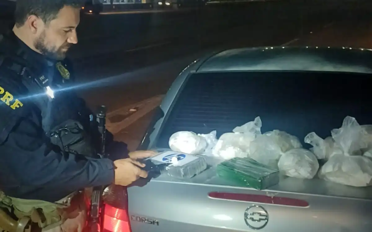 Durante a operação, os policiais deram ordem de parada a um veículo Chevrolet/GM Corsa Sedan, placas DMH3A46, ocupado apenas pelo condutor. Ao ser abordado, o motorista, identificado como Matheus Felipe Ramos, informou que teria ido a São Paulo para comprar roupas para revenda, mas alegou não ter conseguido concluir a compra, sem apresentar justificativa plausível.
