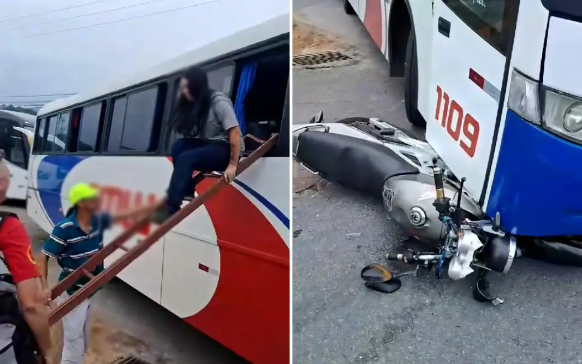 O impacto do acidente foi suficiente para colocar a motocicleta de maneira que impedisse a abertura da porta do ônibus, obrigando o resgate dos ocupantes pelas janelas. A situação se agravou com o vazamento de gasolina da motocicleta, tornando a evacuação ainda mais urgente.