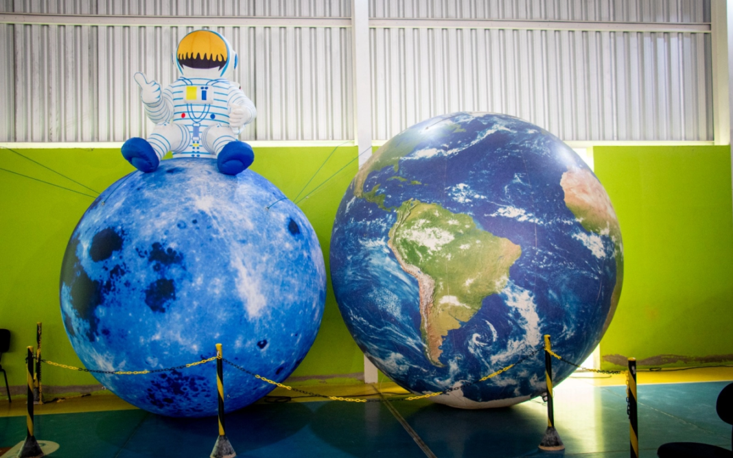 Nesta terça-feira (16), teve início o projeto ‘Planetário Itinerante’, cuja empresa terceirizada ‘Ártemis Planetário Móvel’ instalou uma cúpula inflável no Centro Educacional Infantil Municipal ‘Profª Eunice Soares Santana’, com o objetivo de despertar a curiosidade científica de mais de 4.500 estudantes do Ensino Fundamental por meio da simulação de uma fascinante viagem pelo espaço.