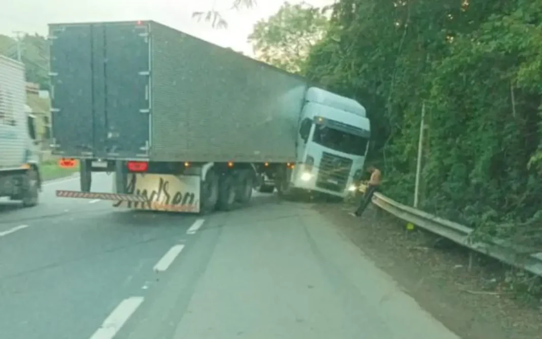 Na tarde desta sexta-feira (25), um caminhoneiro perdeu o controle do veículo na Rodovia Fernão Dias, em Extrema (MG), formando um “L” na pista e bloqueando o trânsito. O incidente, que ocorreu por volta das 17h30 no km 939, sentido São Paulo, gerou um congestionamento de aproximadamente 5 km.