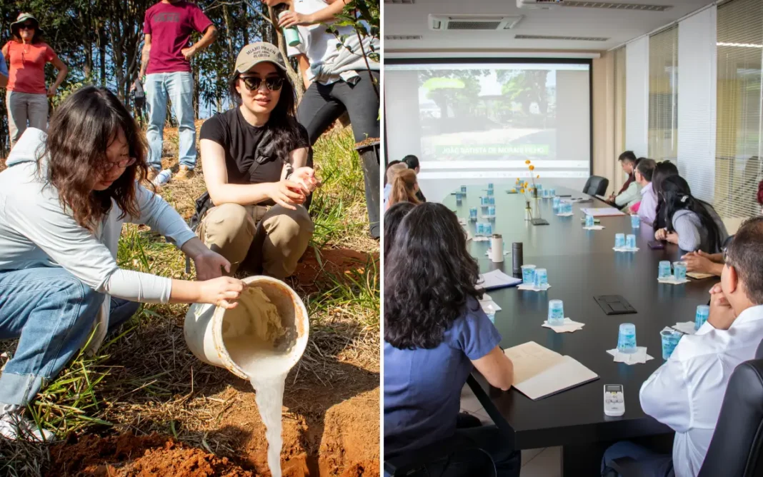 Na parte da tarde, a comitiva seguiu até a sede do Conservador das Águas, no bairro das Posses, onde funciona o Centro de Restauração, espaço em que são cultivadas as mudas de árvores nativas usadas para reflorestamento. Os visitantes conheceram o espaço e aproveitaram a oportunidade de colaborar com a plantio de mudas, que em breve se tornarão árvores protetoras dos mananciais.