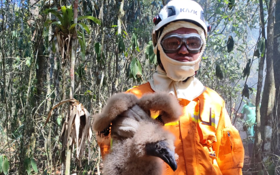 Durante os trabalhos, foi identificado um filhote de urubu ilhado em meio à área atingida pelo incêndio. A ave foi resgatada com segurança e encaminhada para o setor de zoonoses do município, onde passará por avaliação veterinária e receberá o devido tratamento, uma vez que não foi localizada a mãe do animal.