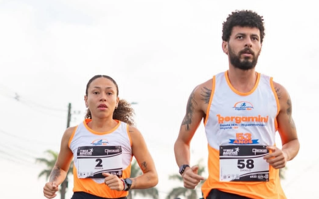 Danilo Cunha e Maria Yara representam Extrema em prova internacional da Meia Maratona da Tribuna, em Praia Grande