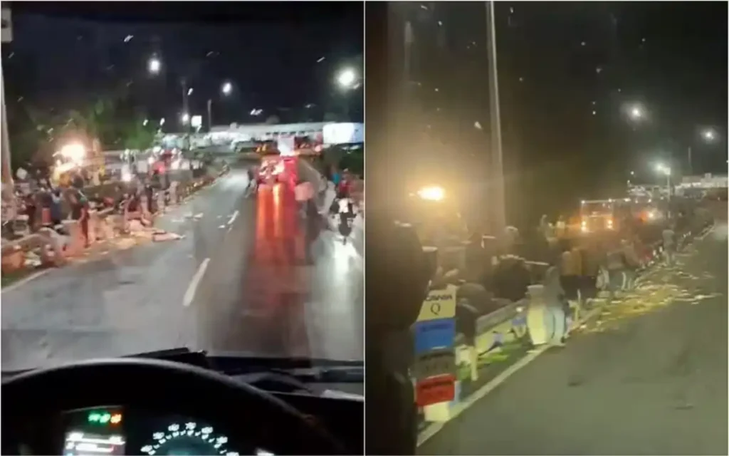 O primeiro caso foi registrado no km 920, em Camanducaia (MG), por volta das 14h30. Um caminhão carregado com produtos diversos tombou na pista, e, pouco depois, imagens compartilhadas nas redes sociais mostraram pessoas saqueando a carga caída. O motorista não sofreu ferimentos, e a Polícia Rodoviária Federal (PRF) informou que não houve registro formal da ocorrência até o momento.
