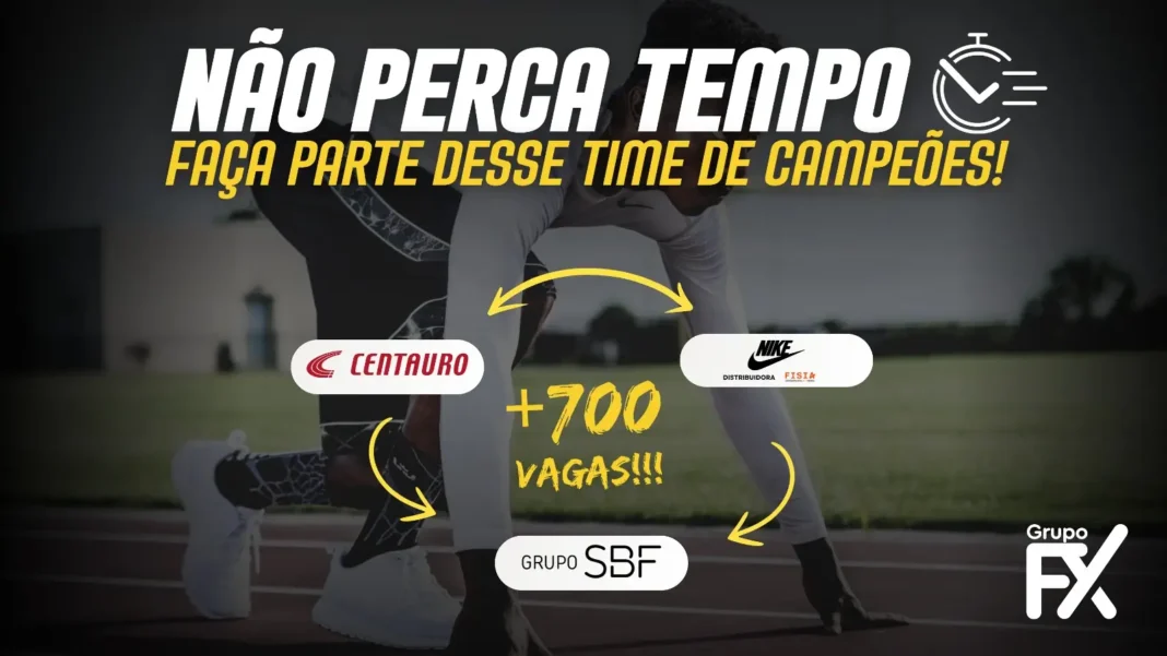 A BLACK está se aproximando e o Grupo SBF precisa de você para finalizar o seu novo time de atletas nas empresas CENTAURO e NIKE! Já são mais de 700 vagas abertas em parceria com o Grupo FX e você pode ser o novo membro deste grande time!