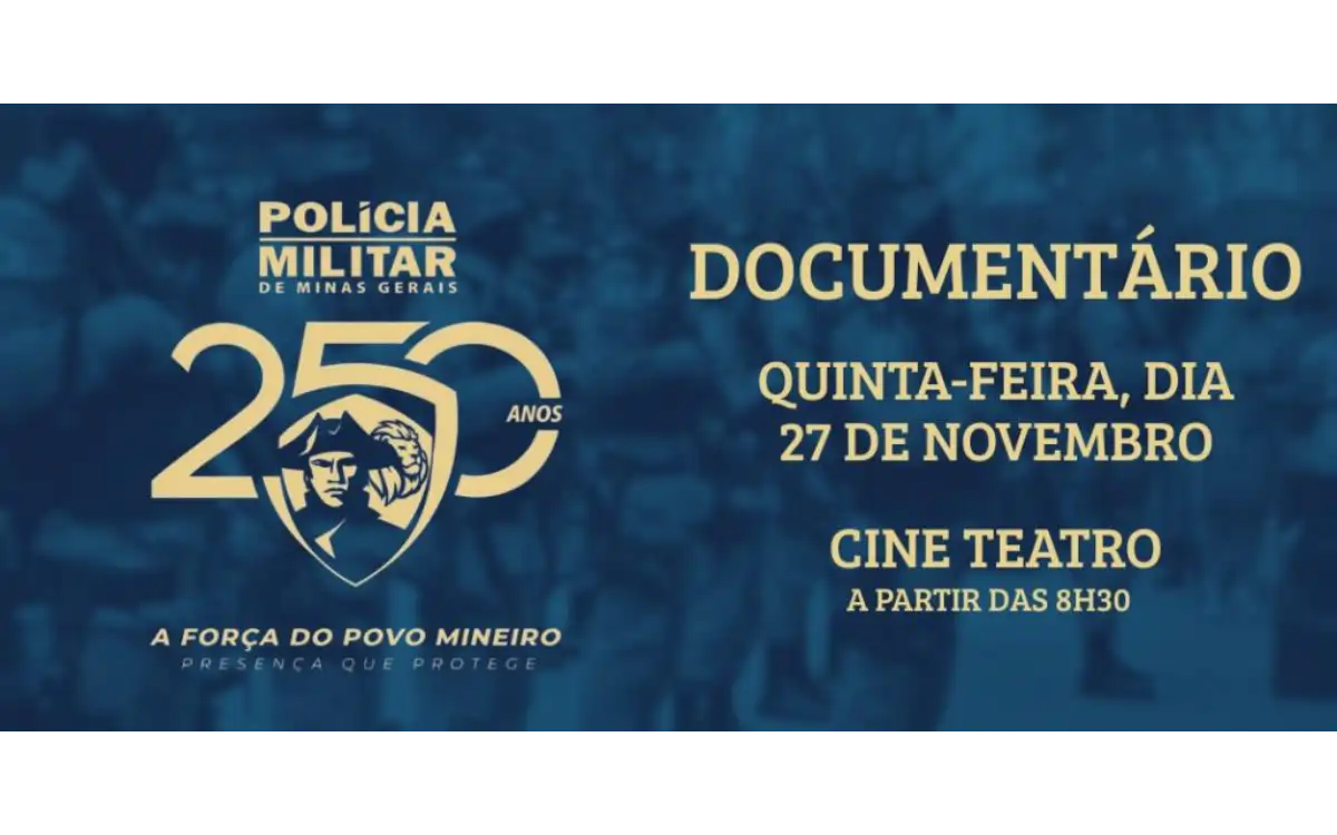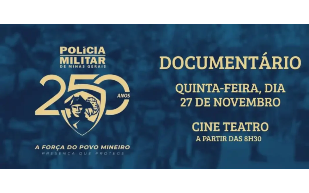 O Comando do 59° BPM promoverá, na manhã desta quinta-feira (27), a exibição do primeiro documentário institucional da Polícia Militar de Minas Gerais, intitulado: “A transformação de uma Polícia que protege”, cujo vídeo será apresentado no Cine Teatro Municipal.