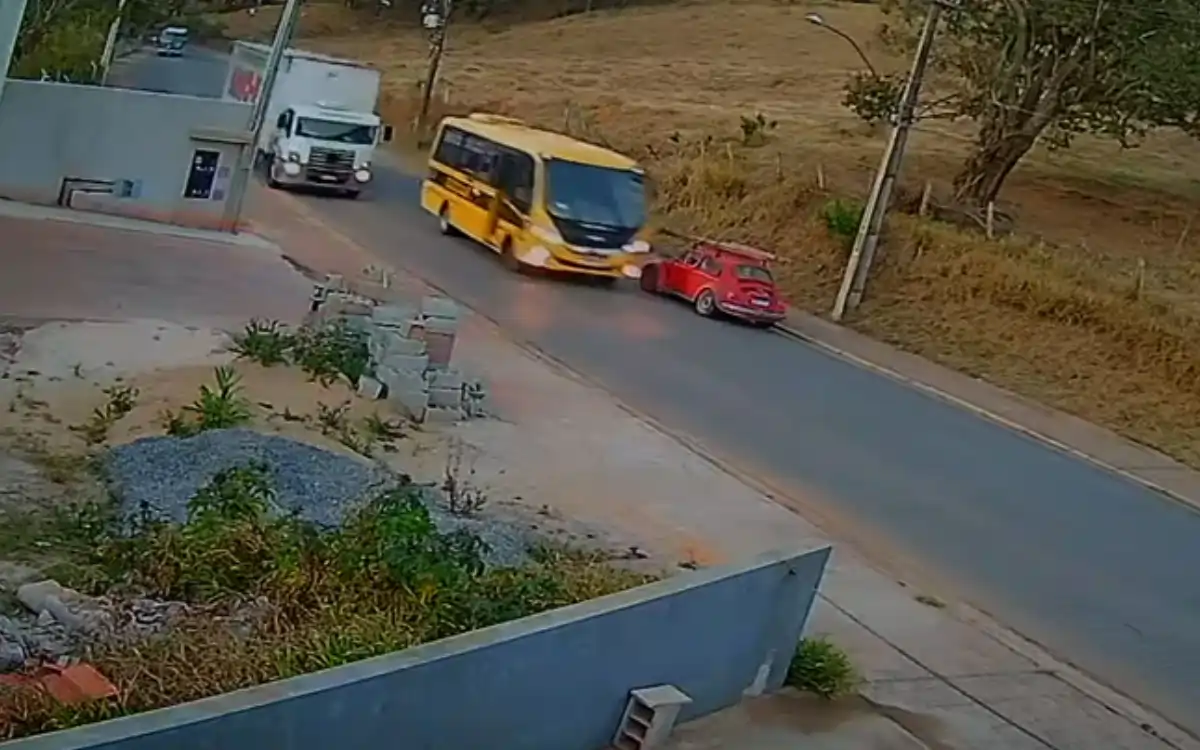 Na tarde desta quinta-feira, 21 de agosto, um grave ato de imprudência foi registrado por câmeras de segurança de uma residência localizada na Avenida Aparecida Miranda, em Pedra Bela. As imagens mostram um ônibus escolar responsável pelo transporte de alunos de Munhoz até cursos e faculdades em Bragança Paulista realizando uma ultrapassagem em uma curva, situação que quase resultou em uma colisão frontal com um veículo que trafegava no sentido contrário.