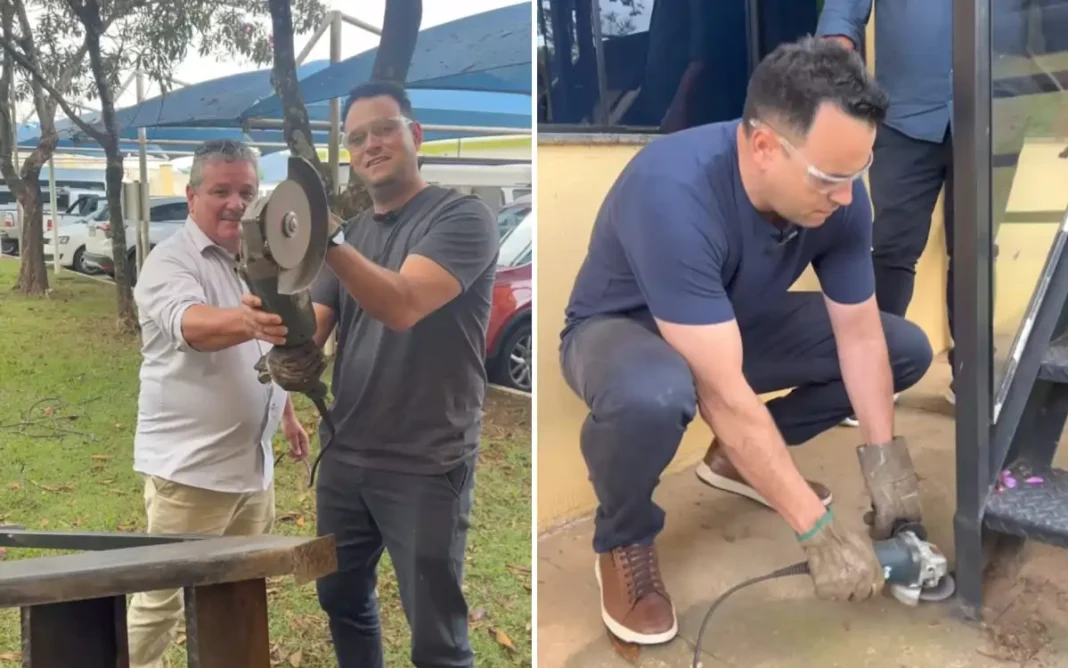 No primeiro dia de mandato, após a posse realizada na Sessão Solene em Extrema, o prefeito Dr. Fabrício Bergamin e o vice-prefeito Walderrama cumpriram uma das promessas da nova gestão: a retirada da escada da porta de trás do gabinete da prefeitura.