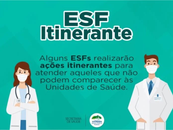 A Prefeitura de Extrema está realizando ações itinerantes com as equipes de saúde das ESFs para atender aqueles que não podem comparecer às unidades de saúde. As ações contarão com atendimento médico, de enfermagem, participação de agentes de endemias, agentes comunitários e mutirões de vacinação contra a Influenza para os grupos prioritários.