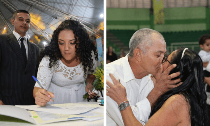 Os casais cumpriram seus votos e trocaram as alianças durante a cerimônia oficializada por um juiz de paz e totalmente custeada pela Secretaria de Assistência Social